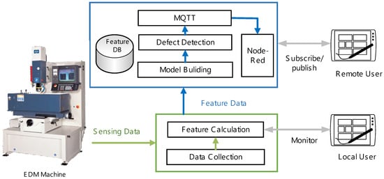 In order to detect the processing process, Caggiano et al. [6] proposed a model-engraving electrical discharge machining monitoring to achieve zero-defect manufacturing. To find out the correlation between processing parameters and inappropriate processing conditions, the model was established with eight highly correlated parameters and monitored with a sampling interval of 32 milliseconds. Caggianoa et al. [7] used a sensor to collect voltage and current signals at a high sampling rate to find ten most relevant features of electrical discharge machining. However, due to the long processing time and the huge amount of data, Gan et al. [8] proposed to use data mining algorithms to solve the feature dimension problem. They reduced the dimension through feature selection models and supervised learning methods, using a self-paced regularizer and ℓ2,1-norm control model.