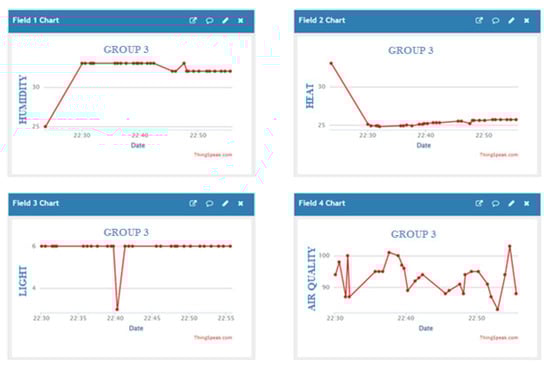 The ThingSpeak web platform was used to monitor data simultaneously and act. As seen in Figure 12, an account is opened through the application. Four channels are created in this account. Eight fields are opened in each channel, and a total of 32 data can be displayed and recorded. The time and date when each data was received can be seen on the chart.