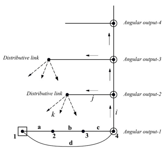 - Joints between the previous output, newer output, and distributive links are represented by solid edges (i, j). In other words, angular outputs are presented vertically above each other.