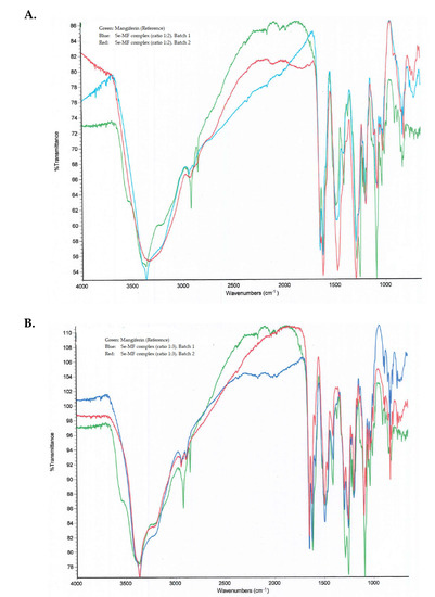 3.3. Elemental Analysis of Metal-Mangiferin Complexes