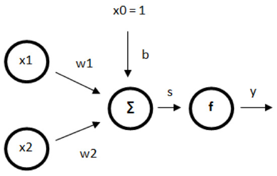 In the neuron model, n is the number of inputs, x1,…, xn are the input signals, in0,…, wn are synaptic weights, y is the output value and f is the activation function. The work of the neuron is as follows. The input signals are multiplied by the corresponding weights. The values that have been obtained are added up. Then, as a result of the action, an s signal is formed, which maps the linear action of the neuron. In the next stage, this signal is subjected to the activation function. It should be assumed that the signal value of x0 is equal to 1, and the weight in0 is called the threshold. The information is stored in the scales. Learning neurons is based on the right choice of weights.