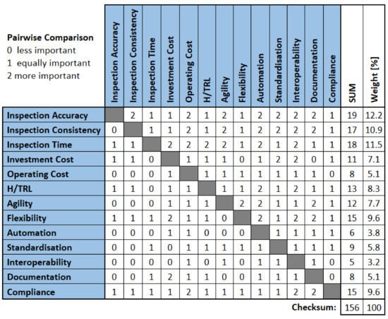 Finally, an attempt of proof of concept was made to semi-quantitatively assess the different agents and rank them using a weighted factor analysis. The importance (weighting) of each criterion was determined performing a pairwise comparison, also called paired comparison [97]. This was done in close collaboration with our industry partner to incorporate the industrial aspect.
