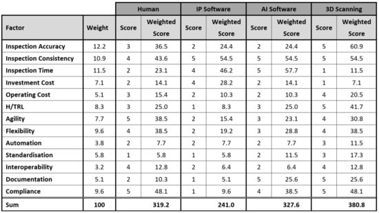 This study used a mix of quantitative, qualitative and semi-quantitative assessment methods for the analysis and comparison of a human operator and advanced technologies. First, the inspection performance of the different inspection agents was quantitatively analysed by determining the inspection accuracy, inspection time and inspection consistency. Hypothesis testing was used to analyse whether the results of the operator statistically differed from the technological counter partner, or if the difference was purely due to chance (Table 3). As the data were not normally distributed, nonparametric testing was required. Mann–Whitney U Test and Wald–Wolfowitz Runs Test were chosen for comparing two independent non-normally distributed samples. The statistical analysis was done in Statistica, version 13.3.0 (developed by TIBCO, Palo Alto, CA, USA).