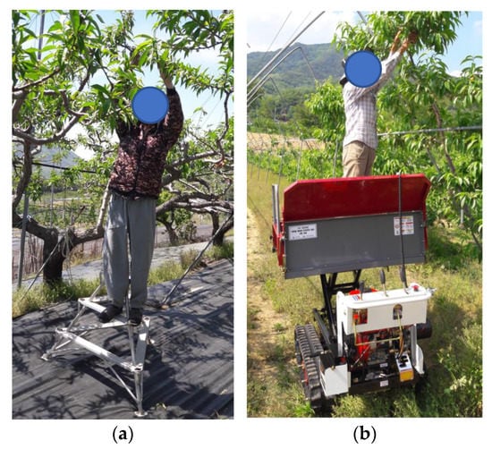 Most farmers focus on producing high-quality agricultural produce and reducing costs rather than controlling WMSD risk factors that can help improve their own health []. In Korea, WMSD cases are expected to increase significantly with the ageing of the farming population. This study aims to (1) ergonomically analyze all agricultural tasks performed during peach farming in a Korean farming organization located in a city in the southern part of Korea, from pruning in January to composting work in December; (2) introduce ergonomic interventions for controlling the musculoskeletal loadings analyzed; and (3) subjectively and objectively evaluate the interventions implemented. All processes associated with this study were conducted in 2020 and were based on the participatory approach, in which an ergonomist, farmers, and the Rural Development Agency (RDA, an affiliation of the Ministry of Agriculture, Food and Rural Affairs of Korea) participated. The RDA financially supported this study and provided the protocol for this study and information on interventions adopted in other farming organizations. It is expected that this study can help improve the health and safety of farmers as well as farming work efficiency.