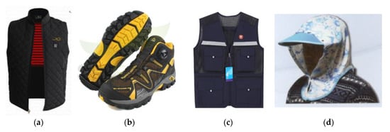 Interventions against cold and heat: (a) thermal vest; (b) agricultural shoes; (c) cooling vest; (d) farmer hat.