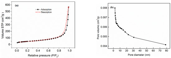 where A and B are the Harkin–Jura isotherm parameters [53]. Fitting curves for the Harkin–Jura isotherm are illustrated in Figure 8g.