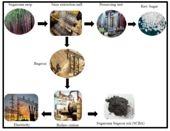 Flow diagram of sugarcane bagasse ash [6,7].