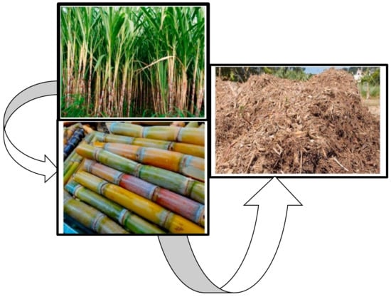 In this study, the use of bases such as , and acids like , , and for the pre-treatment of the ash, and yield silica with desirable properties. The sugarcane bagasse ash is rich with silica of about 73%, and it is economically feasible due to the conversion of raw material to the production of silica gels and powders [4,5]. The sugarcane bagasse has been investigated as the potential raw material and source of sugar, juice, and fuel in the ethanol industry (shown in Figure 1) and valuable material in the cementious industry [6].