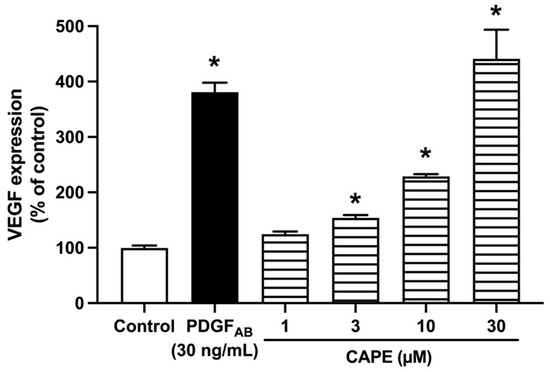 3.1. CAPE Increases the Release of VEGF from VSMCs