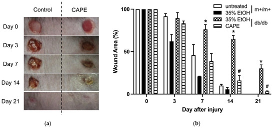 3.3. CAPE Enhances Cutaneous Wound Healing in a Diabetic Mouse Model