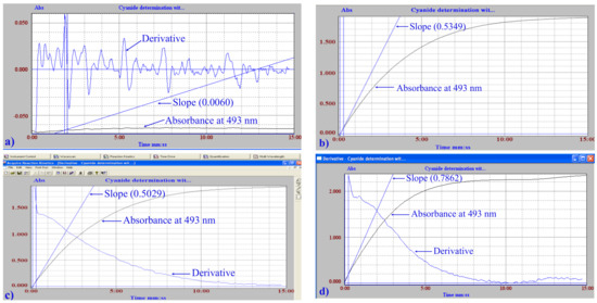 - Velasco, A.; Silva, M.; Valcarcel, M. Kinetic spectrophotometric determination of nanogram amounts of cyanide. Talanta 1991, 38, 303–308. [Google Scholar] [CrossRef]