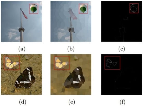 - Achanta, R.; Shaji, A.; Smith, K.; Lucchi, A.; Fua, P.; Süsstrunk, S. SLIC Superpixels Compared to State-of-the-Art Superpixel Methods. IEEE Trans. Pattern Anal. Mach. Intell. 2012, 34, 2274–2282. [Google Scholar] [CrossRef] [PubMed] [Green Version]