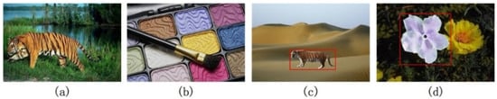 Table 1 shows the classification results based on the extracted features of the images shown in Figure 10 using the CCW chroma detection operator, sharpness detection operator, salient region detection operator, and NSS. Figure 10a,b show examples of the CCW chroma detection operator classification failure and sharpness detection operator and NSS classification success. Figure 10c,d show examples of the sharpness detection operator classification failure and CCW chroma detection operator and NSS classification success. Figure 10e,f show examples of NSS classification failure, which also, on the other hand, demonstrates the CCW chroma detection operator and the sharpness detection operator classification success. The results show that combining features can obtain chroma, sharpness changes, and texture distortion of color images, and provide a new and more comprehensive feature extraction and information recognition that cannot be obtained by a single feature. It also partially relieves the difficulties of single feature classification.