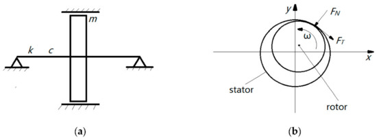 The rub-impact model discussed is a Jeffcott rotor system, as shown in Figure 7.