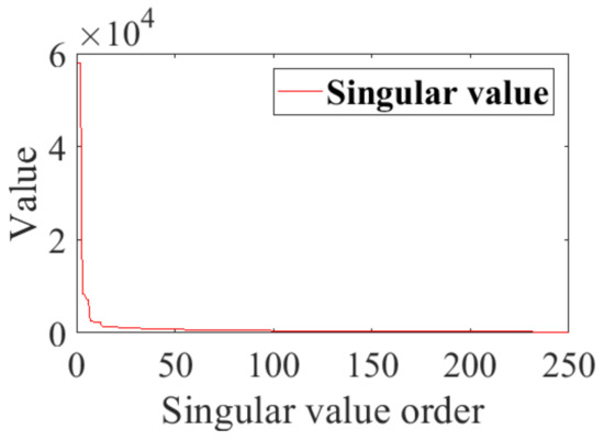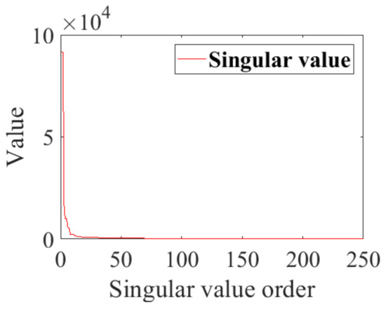 In conclusion, when , rubbing fault response is . The rank of , which is constructed from , is not greater than 250. Because the number of non-zero singular values is equal to , the number of non-zero singular values is not greater than 250.