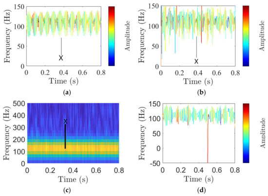 When , the rubbing fault response can be approximately formulated as Equation (9) by neglecting the minor frequency components with low amplitudes [4]. The two instantaneous frequency components with the largest amplitude and the two instantaneous amplitude components with the largest amplitude are considered.