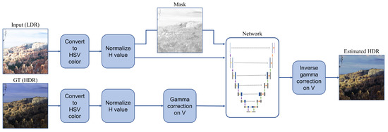 - Chen, X.; Liu, Y.; Zhang, Z.; Qiao, Y.; Dong, C. HDRUnet: Single image HDR reconstruction with denoising and dequantization. In Proceedings of the IEEE/CVF Conference on Computer Vision and Pattern Recognition, Nashville, TN, USA, 20–25 June 2021; pp. 354–363. [Google Scholar]