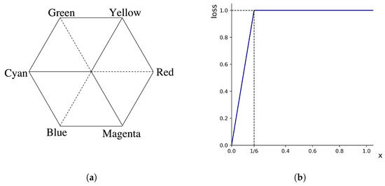 - Circle plane distance: We converted H values to the points on a unit circle in polar coordinates and calculated the Euclidean distance between two points for H loss as shown in the right image of Figure 11. This function also shows steeper slopes for smaller distances as the square root function. MAE was applied to S and V loss.