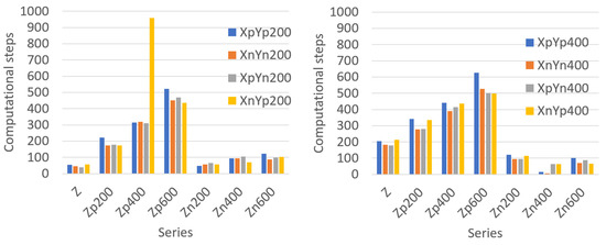 Computational steps in series under tri-directional mode for SB2 model (left) series XY200 and (right) series XY400.