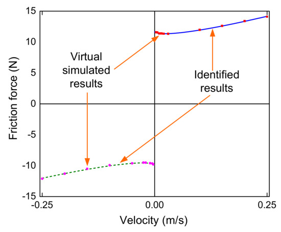 in which Fmsf is the friction force measured at ith constant velocity, and Fsf is the friction force calculated by Equation (40). The best values of the friction model are given in Table 2.