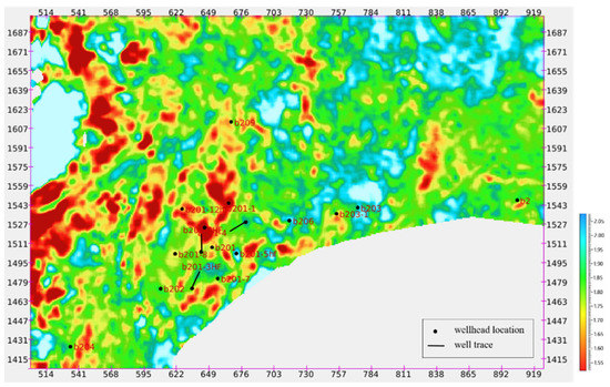 In order to prove the effectiveness and feasibility of the inversion method in this paper, the 2D Marine seismic data in the NS region is inverted. Since the marine seismic data packet contains a large number of multiple waves, it is necessary to preprocess the data before inversion. After preprocessing, pre-stack time migration was used to obtain the common image point track set, and the pre-stack data volume containing angle information was obtained. Figure 3 shows the well placement and previous Vp/Vs ratio map of the working area.