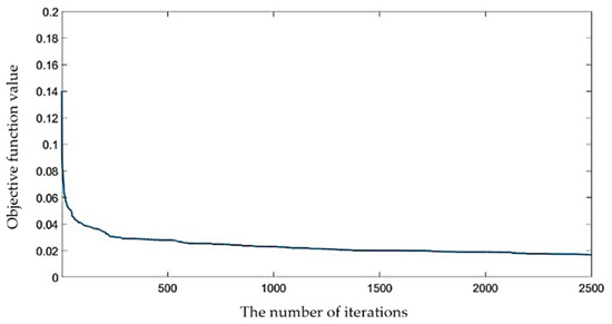 In addition, as shown in Figure 5, by extracting the objective function value of a particle in the particle swarm, it can be found that, with the increase in the number of iterations, the particle is constantly converging, that is, all the particles in the final particle swarm will move in the same direction in the search space, which further confirms the effectiveness of the algorithm.