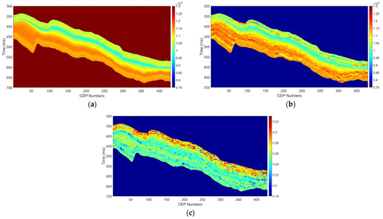 (a) Background model (b) P-impedance of inverted results (c) Poisson’s ratio of inverted results.