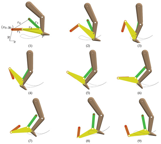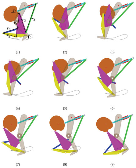 - Tsuge, B.Y.; McCarthy, J.M. Synthesis of a 10-bar linkage to guide the gait cycle of the human leg. In Proceedings of the ASME 2015 International Design Engineering Technical Conferences and Computers and Information in Engineering Conference; American Society of Mechanical Engineers Digital Collection: New York, NY, USA, 2015; pp. 1–7. [Google Scholar]