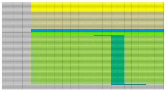 The mesh was subdivided in a manner such that consistent mesh sizing with edge length of 10 µm could be prescribed in the y direction, with a mesh edge length of 100 µm in the x and z directions, as shown in Figure 5. The mesh comprised approximately 5,000,000 cells, representing a mesh significantly larger than that used in similar previous work [35]. The fixed mesh lengths of 100 and 10 µm ensured that the aspect ratio of the cells was within a reasonable range (10:1, for x and z:y), albeit the aspect ratios were slightly larger in the isolation layer, for example, where 4 cells span the 35 µm gap.