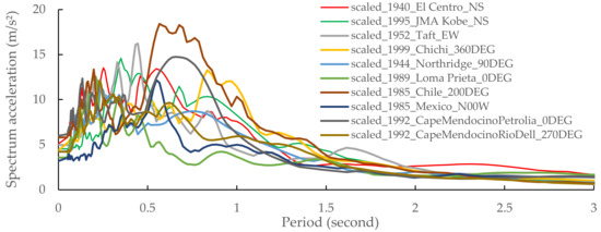The design concrete compressive strength was 38 MPa, and the tensile strength of the steel rebar was 399 MPa. The total weight of the specimens was 40.87 kN, and each story weight is about 4.55 kN. The experimental raw data, which consists of the specimens’ dimensions, strengths, input seismic motions, displacement responses, and acceleration responses, were obtained from Datacenterhub [29].