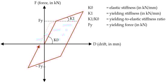 The BRB applied for the RC frame structure with the curtailed wall is chosen based on the study performed by Naqi and Saito [32]. This adoption consideration is taken on account of the similarity in the building’s type, height, and dimensions. The applied BRB strength detail for this study are elaborated in Table 6 and Figure 19.
