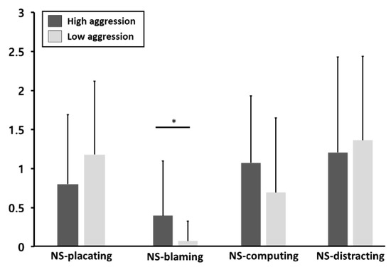 The significant difference in the task of exploring the communication style between the HA and LA groups was seen only in the NS-blaming. Since this task was configured in a format to select a communication type repeatedly, the number of selections may reflect an individual’s preference for the communication style in interpersonal conflict situations. In the Satir model, communication was viewed as a coping method to survive while protecting oneself from anger experienced in an external conflict situation. It was explained that the experience of anger might be different between dysfunctional communication types. Specifically, placaters tend to be difficult to express anger, whereas blamers express anger indiscriminately [55]. Previous studies have demonstrated the higher the aggression, the more the anger is expressed to the outside through aggressive behaviors [56,57]. Therefore, greater NA-blaming in participants with high aggression seems to properly reflect their characteristics related to anger expression.