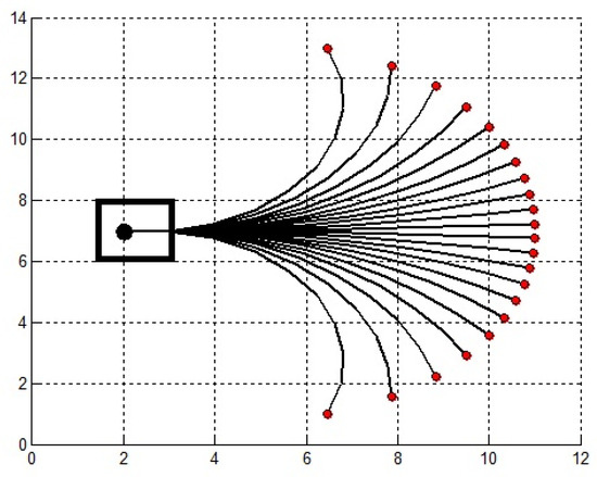 Based on the above vehicle kinematics model, the feasible path of the vehicle in path planning is shown in