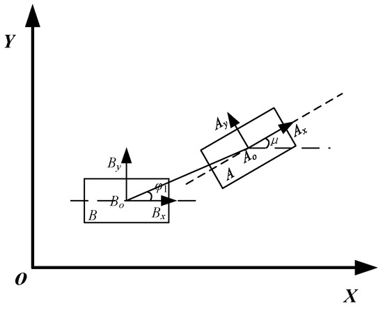 B represent vehicles and obstacles, respectively. The unit vectors of rectangle