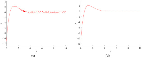 Figure 12a, the improved algorithm tracks the desired trajectory image. The black represents the desired trajectory, and the red–dotted line represents the tracking trajectory.