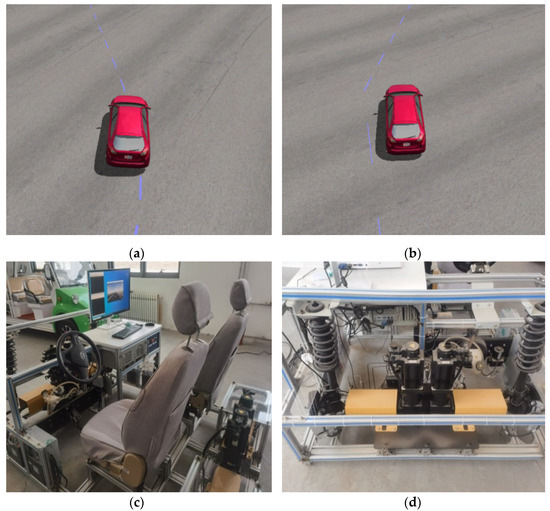 Figure 13c,d are the test images of the bench in the Matlab-Carsim HIL simulation platform.
