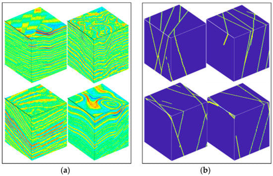 (a) Seismic data sets and (b) their fault labels.