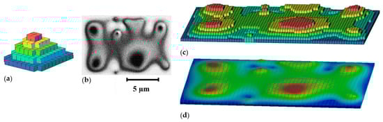 The length of the edges of the voxels and the elevation corresponding to the pixel groups was established by considering that each pixel has a square area of 0.018 × 0.018 µm.