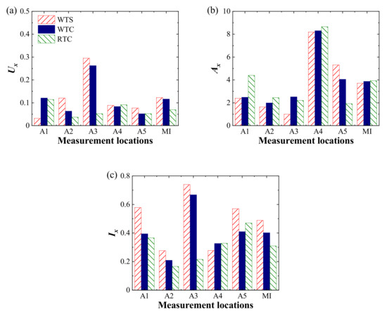 where M is the total number of measurement locations and ax means special indicators: Ux, Ax, and Ix.