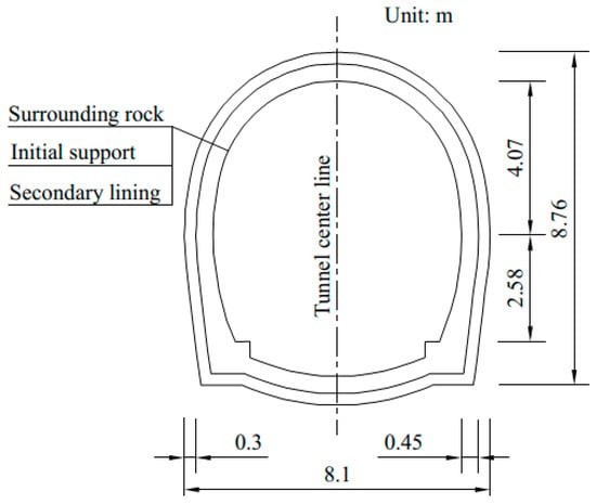 23]. It is mainly controlled by the axial force and a bending moment of the structure, which belongs to the category of the concrete structure. The tunnel lining is safe when the calculated safety factor is greater than 2.0.