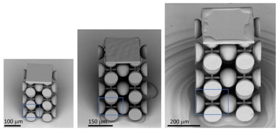 - Pertoldi, L.; Zega, V.; Comi, C.; Osellame, R. Dynamic mechanical characterization of two-photon-polymerized SZ2080 photoresist. J. Appl. Phys. 2020, 128, 175102. [Google Scholar] [CrossRef]