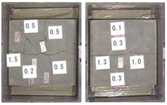 The test piece and corresponding crack width (the number in the figure is the width of the crack there in mm).