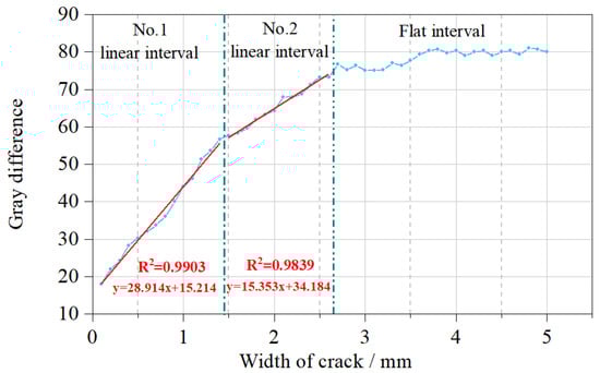 - In the interval of the crack width from 0.1 mm to 1.4 mm, the gray difference of the crack shows a linear change, which is defined as the No.1 linear interval.