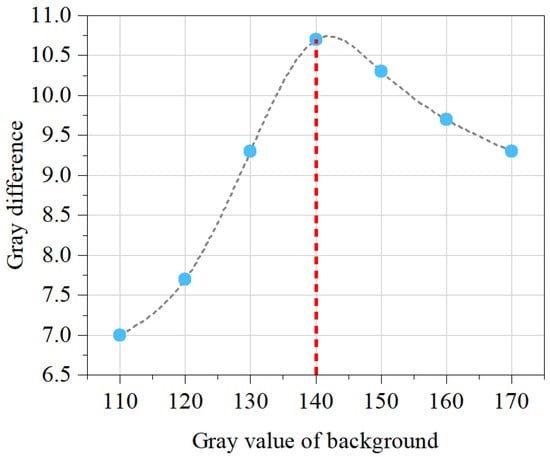 With the background gray value increase, the crack grayscale difference shows a trend of first increasing and then decreasing. When the background gray value reaches 140, it has the most significant difference, which is the best background gray value.
