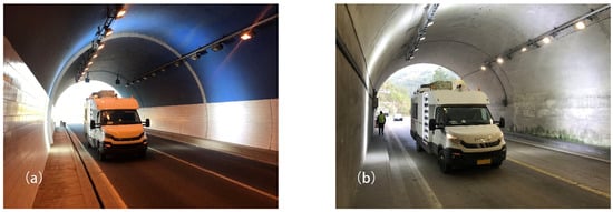 - Yang, J.; Liu, X.; Liu, X.; Zhang, P.; Peng, F. Review of Rapid Test Vehicles for Highway Tunnel Structure. J. East China Jiaotong Univ. 2018, 4, 30–38. [Google Scholar]