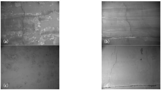 Images of tunnel lining cracks, (a) cracks picture with breakage, (b) cracks picture with seepage, (c) cracks picture with stains, (d) cracks picture with expansion joint.