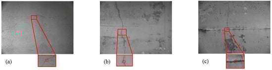 As a mountainous country, the mountain area accounts for two-thirds of China’s land area. The tunnel, the vital part of the mountain highway, plays an active role in shortening the driving distance, reducing fuel consumption, and protecting the environment, which has further yielded social and economic benefits []. With the rapid increase in the length and number of tunnels, the development of tunnels in China has shifted from a construction-oriented phase to a new period when an equal emphasis is placed on construction and maintenance. More and more problems have been exposed in tunnels constructed in early years, which brought considerable challenges to the health and safe operation of the tunnels. As a result, tunnel health inspections have become increasingly important. The structural problems of tunnels are primarily presented in apparent forms, such as cracks and water leakage. Traditional tunnel safety detection methods mainly rely on manual detection, which cannot meet the requirements of detection speed, accuracy, and safety requirements. Consequently, the need for mechanized, automated, and intelligent detection methods has become more and more urgent. In recent years, the continuous development of machine vision technology has provided a means of intelligent detection on tunnel apparent diseases [].