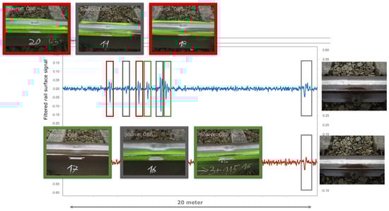 After providing the necessary data (positioning) quality, we can evaluate the potentials of the measurement system. Different rail phenomena lead to different signal characteristics. Figure 3 shows short-wave phenomena already possible to be identified with the surface signal or derivatives of the signal.