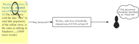 Text classification is a classic topic in the field of natural language processing. With the development of information technology, a large amount of document-level text data have emerged on different topics, such as news articles [1], patent documents [2], e-commerce [3], construction specification [4], and medical narratives [5]. Effective classification of those long documents is beneficial to the efficient acquisition of target information. Differently from short texts, long documents have more characters and contain more topically irrelevant information, which usually affects text classification tasks. The core information in the document’s text is often hidden in several keywords or sentences, as shown in Figure 1. Hence, how to excavate this information is a challenging problem for long document classification.