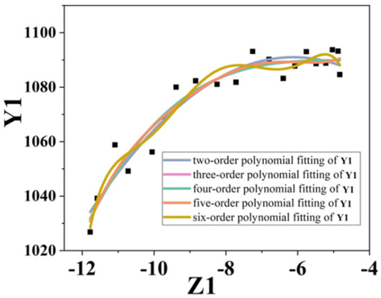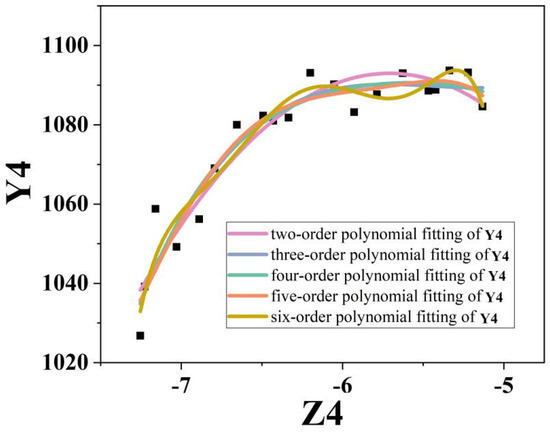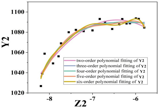 To verify those multi-order polynomial results and find the optimum order, we select a real value (1058.8, 958.14), where Z = −2.06. According to the error results from Table 5, we can find a four-order polynomial that meets the forecast requirements well.